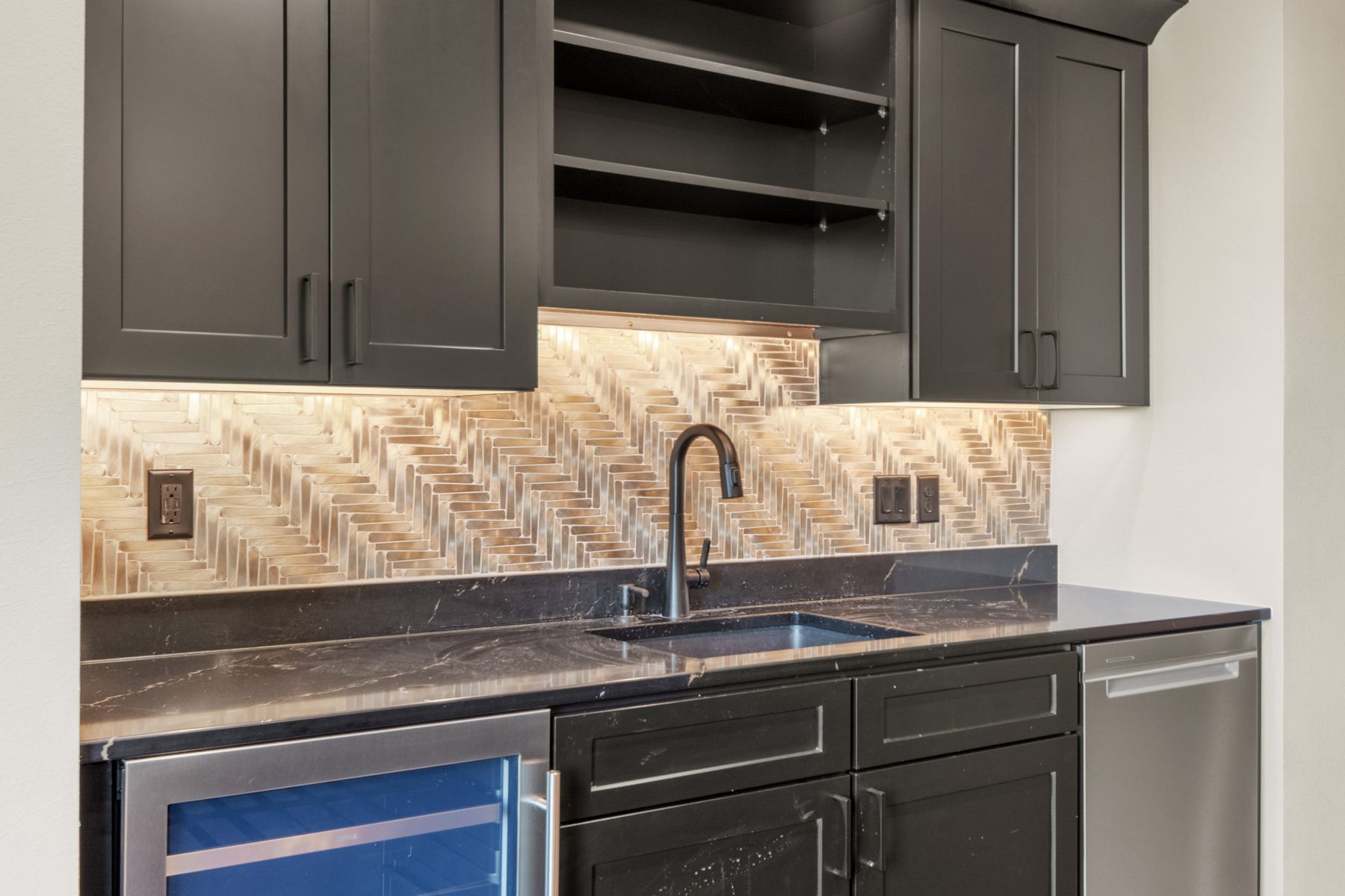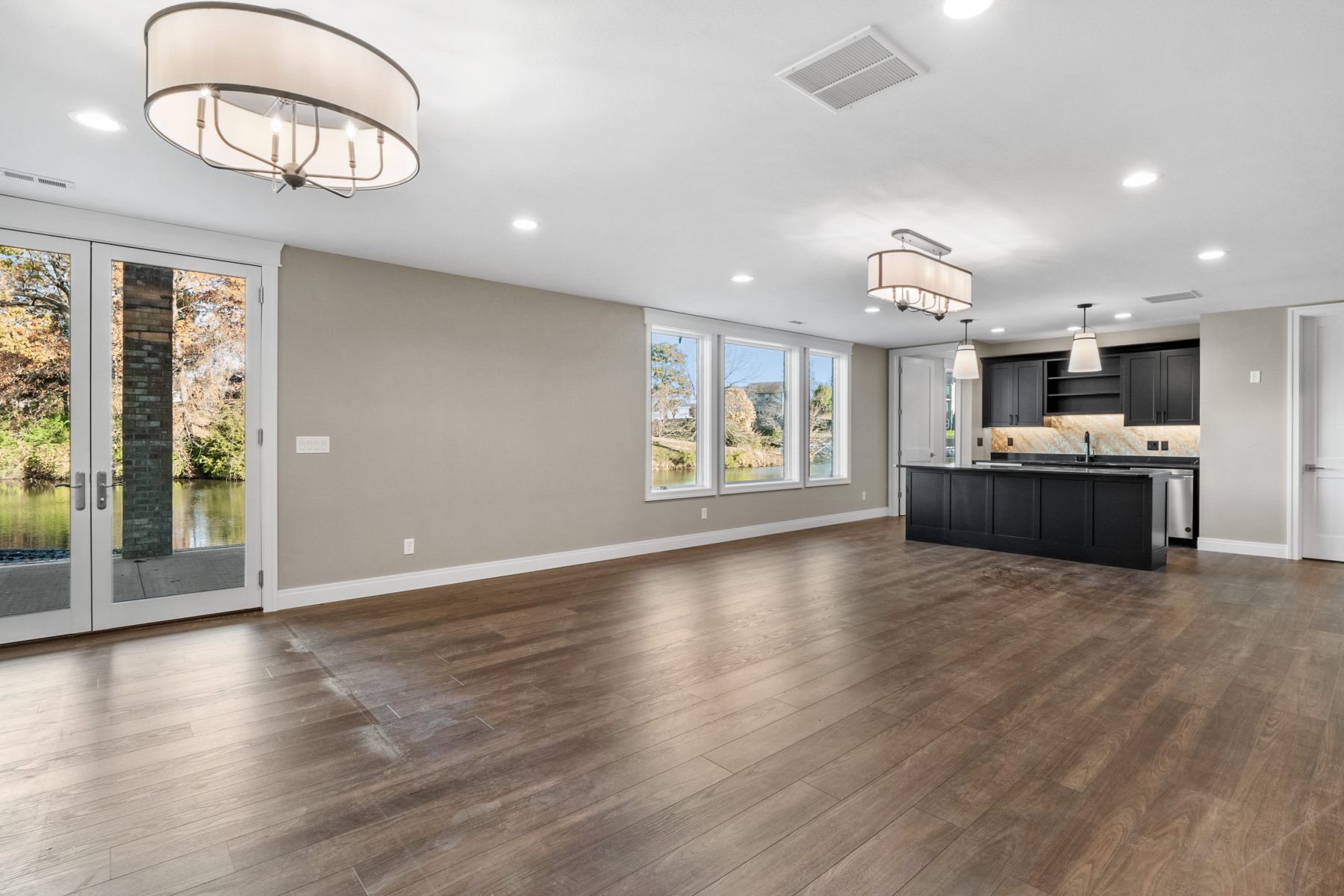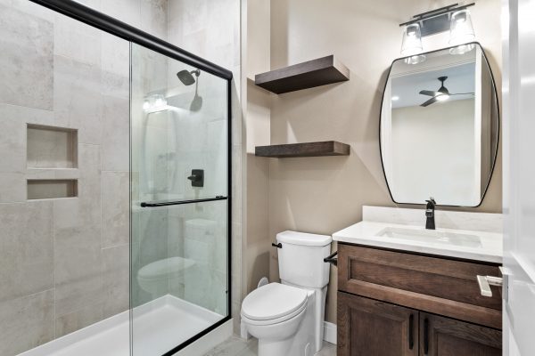 From the master bathroom to the garage, this home was completely customized and drawn from scratch. Our buyers came to us with an idea, and we turned that vision into reality. This massive ranch sits on two lots in the Patio Homes of Far Oaks along the water. Custom features included an elevator, a screened-in deck, an all-seasons room, custom tiled showers in every bathroom, a golf simulator, and one of our most detailed kitchens to date.