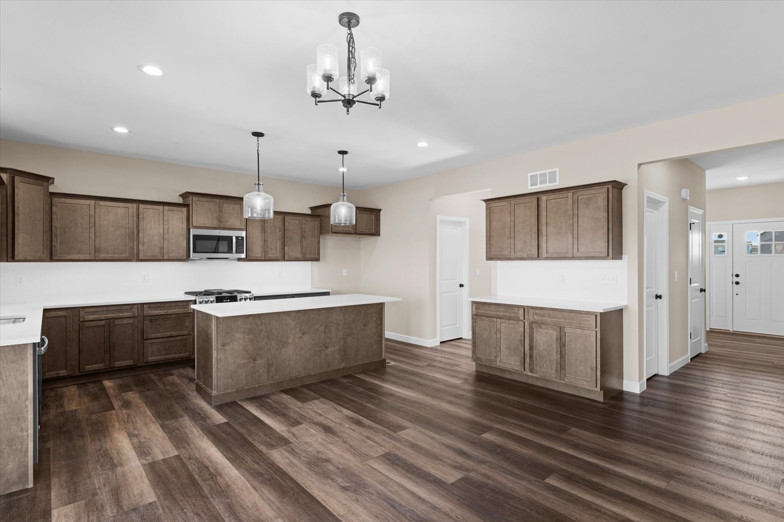 This two-story, 5-bedroom, 3.5-bathroom home spans 3,260 square feet and boasts a large open floor plan on the main level with a separate dining area. Being one of our newest models within the Savannah Hills community, it is sure to meet the needs your family is looking for! With four bedrooms, including the primary, on the second floor and one in the basement, it also features a recreation area in the basement, complemented by a three-car garage. The upstairs primary bedroom features a large bathroom with a tiled shower and a free-standing tub, all complemented by a massive walk-in closet.